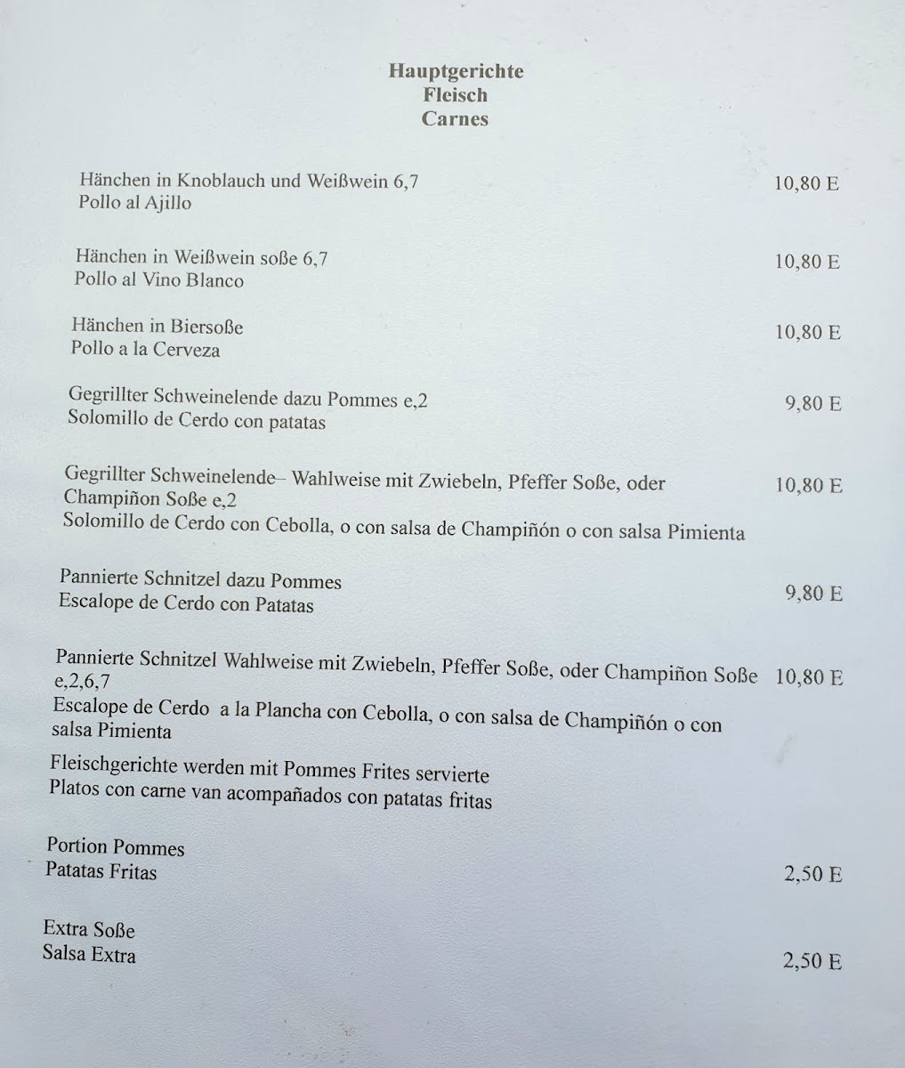 Gaststatte Alte Schule Los Molinos de Don Quijote Menu